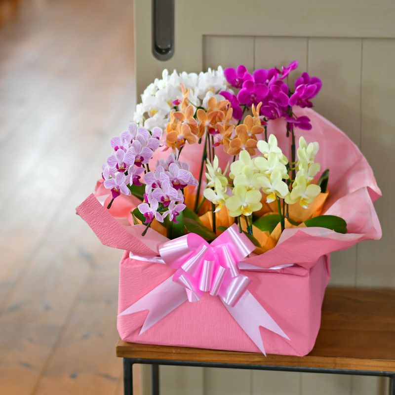 カララ胡蝶蘭は、可憐な色合いと柔らかな印象が魅力のミディタイプ胡蝶蘭です。誕生日祝い、お礼、季節イベントなど、個人ギフトシーンに人気があります。 ピンクや白を基調とした花色は、女性への贈り物やナチュラルな空間にぴったり。サイズもコンパクトで、ご自宅や小規模なオフィスでも飾りやすく喜ばれます。名古屋・東京・大阪など全国配送対応。定型カード・ラッピング対応。営業日昼12時までの注文で即日発送可。