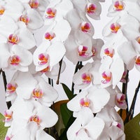 多本数の胡蝶蘭寄せ植えは職人の腕の見せ所です。バランス良く寄せ植えします。