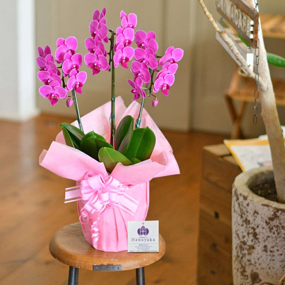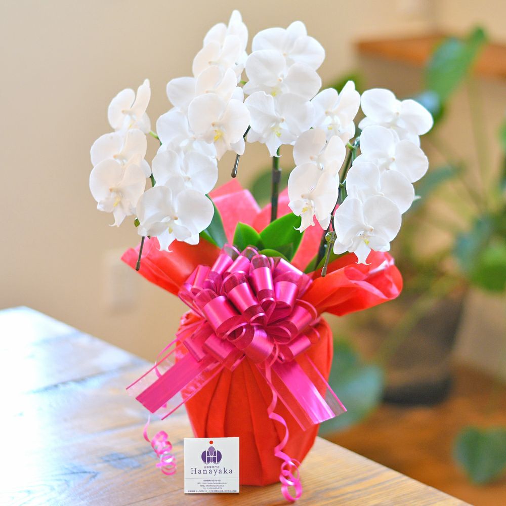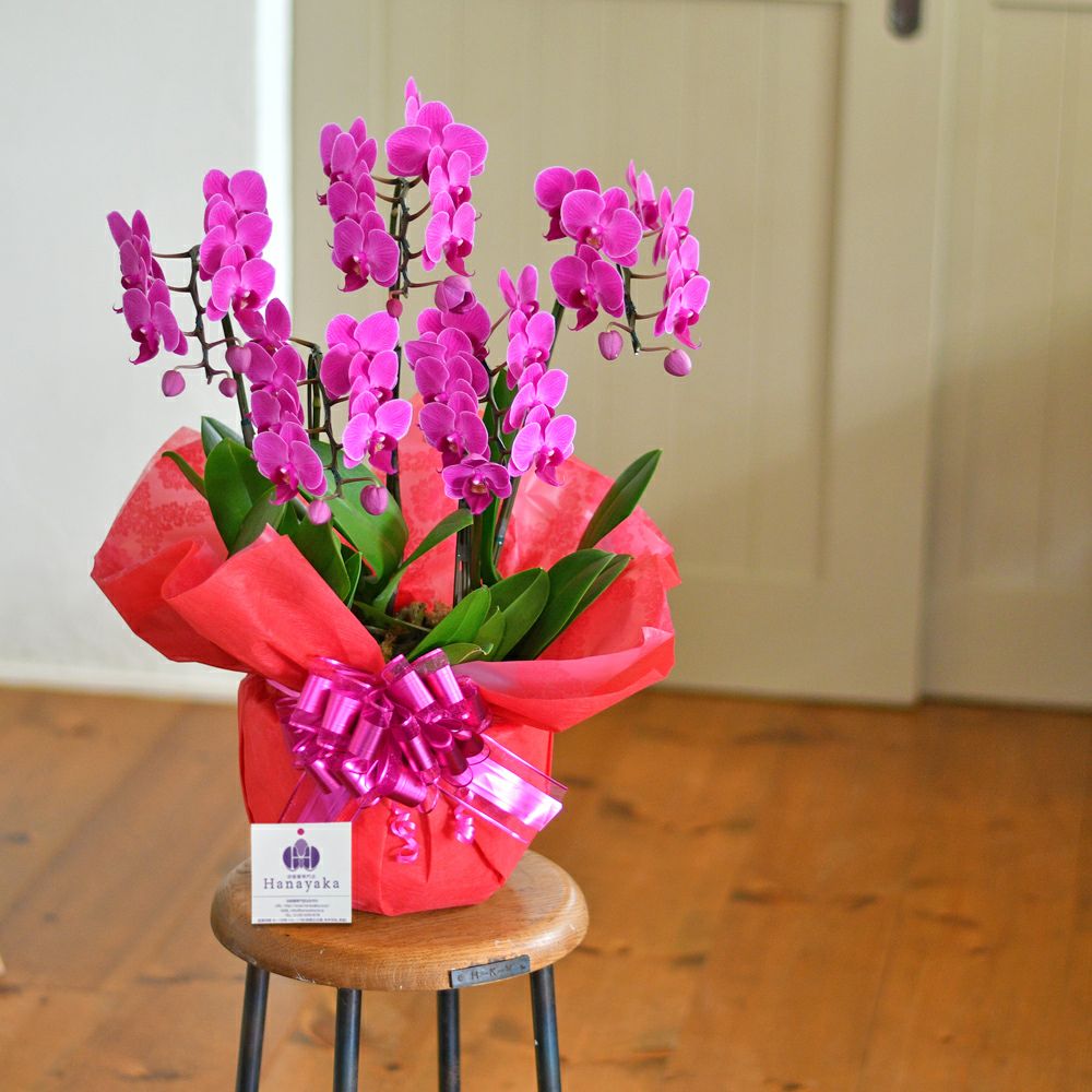 ミディ胡蝶蘭は、誕生日、御礼、開店祝い、などにぴったりなコンパクトで華やかな贈り物です。大輪胡蝶蘭より小さめですが、色鮮やかで華やかさを持ち合わせた一鉢。 小ぶりながら、お店のカウンター、オフィスや個人のデスクにもぴったりで、場所を取らずに華やかさを演出します。花言葉の「幸福が飛んでくる」は、贈り物としての特別な意味を伝えます。名古屋・東京・大阪など全国配送対応。立札・ラッピング対応。営業日昼12時までの注文で即日発送可。
