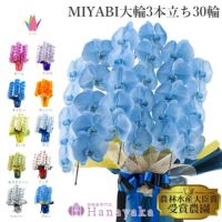青い胡蝶蘭 オレンジ 緑 黄色 紫 ブルー パープル 彩り豊富な胡蝶蘭 MIYABI 大輪3本立ち 30輪以上 MIYABI定番カラー