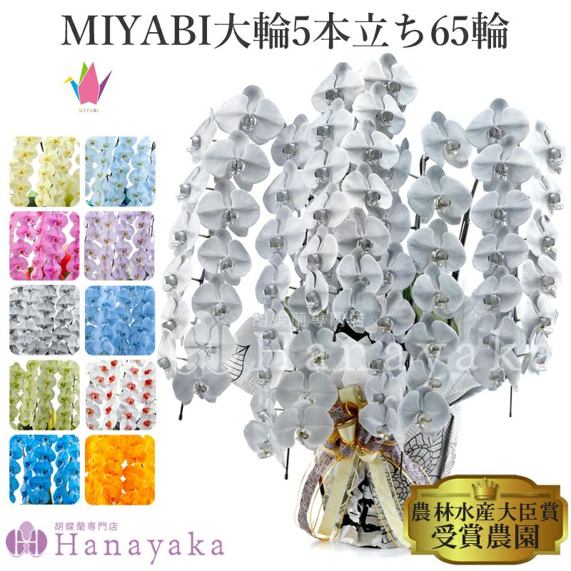 青い胡蝶蘭 オレンジ 緑 黄色 紫 ブルー パープル 彩り豊富な胡蝶蘭 MIYABI 大輪5本立ち 65輪以上 ※佐川急便