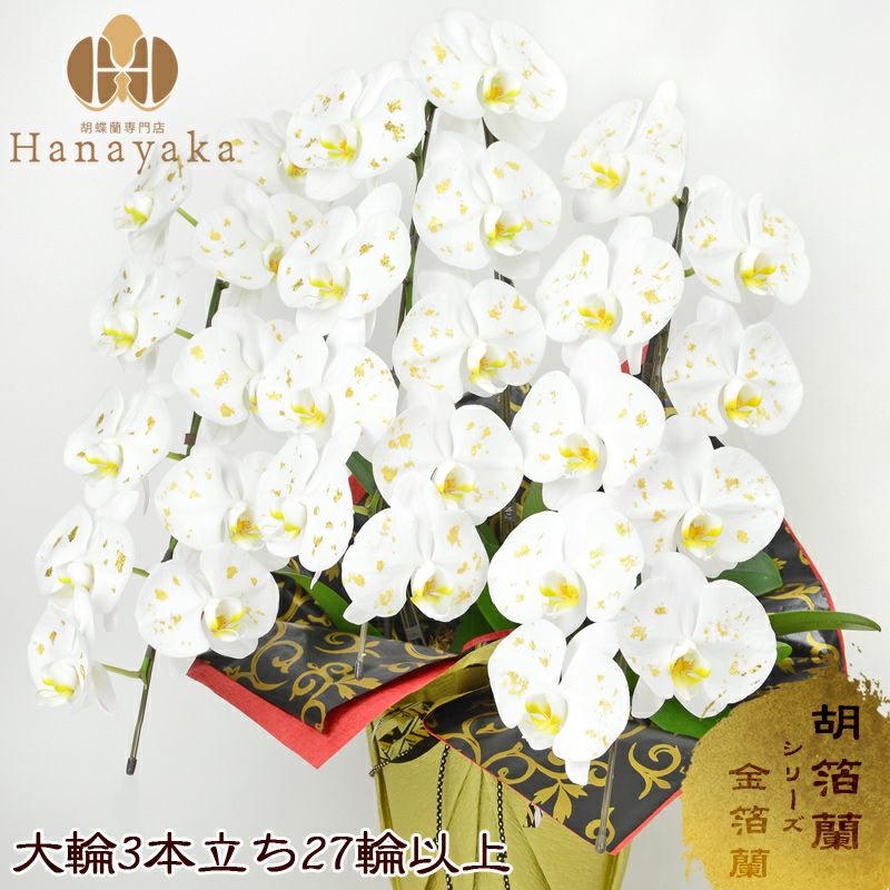 金箔を施した絢爛豪華な胡蝶蘭 胡箔蘭シリーズ 金箔蘭 胡蝶蘭 白大輪3本立ち 27輪以上 【営業日昼12時迄の注文で翌日出荷】