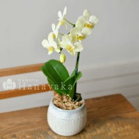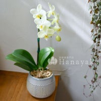 商品説明 デザイン鉢がおしゃれ。小さな花弁が可愛いミディ胡蝶蘭。