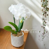 商品説明 デザイン鉢がおしゃれ。小さな花弁が可愛いミディ胡蝶蘭。
