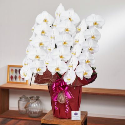 4. SALE!2万円コース【花上木目調札付き】 胡蝶蘭 大輪3本立ち 30輪以上(つぼみ込み) 10R ※TBK